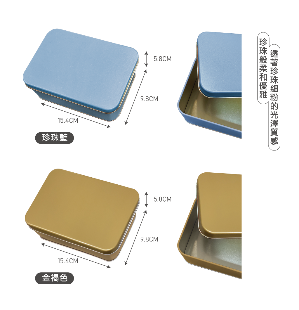 L-CHC-0001〔方鐵盒 15.4*9.8 (+5.8)cm〕- 珍珠藍/金褐色