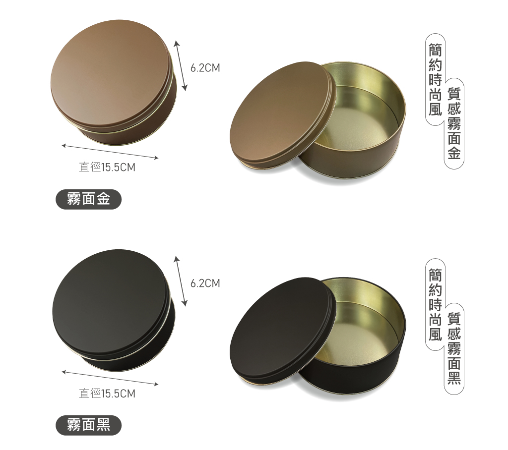 L-CHC-0006〔圓鐵盒_(Ø)直徑15.5cm〕- 質感霧面金 / 霧面黑